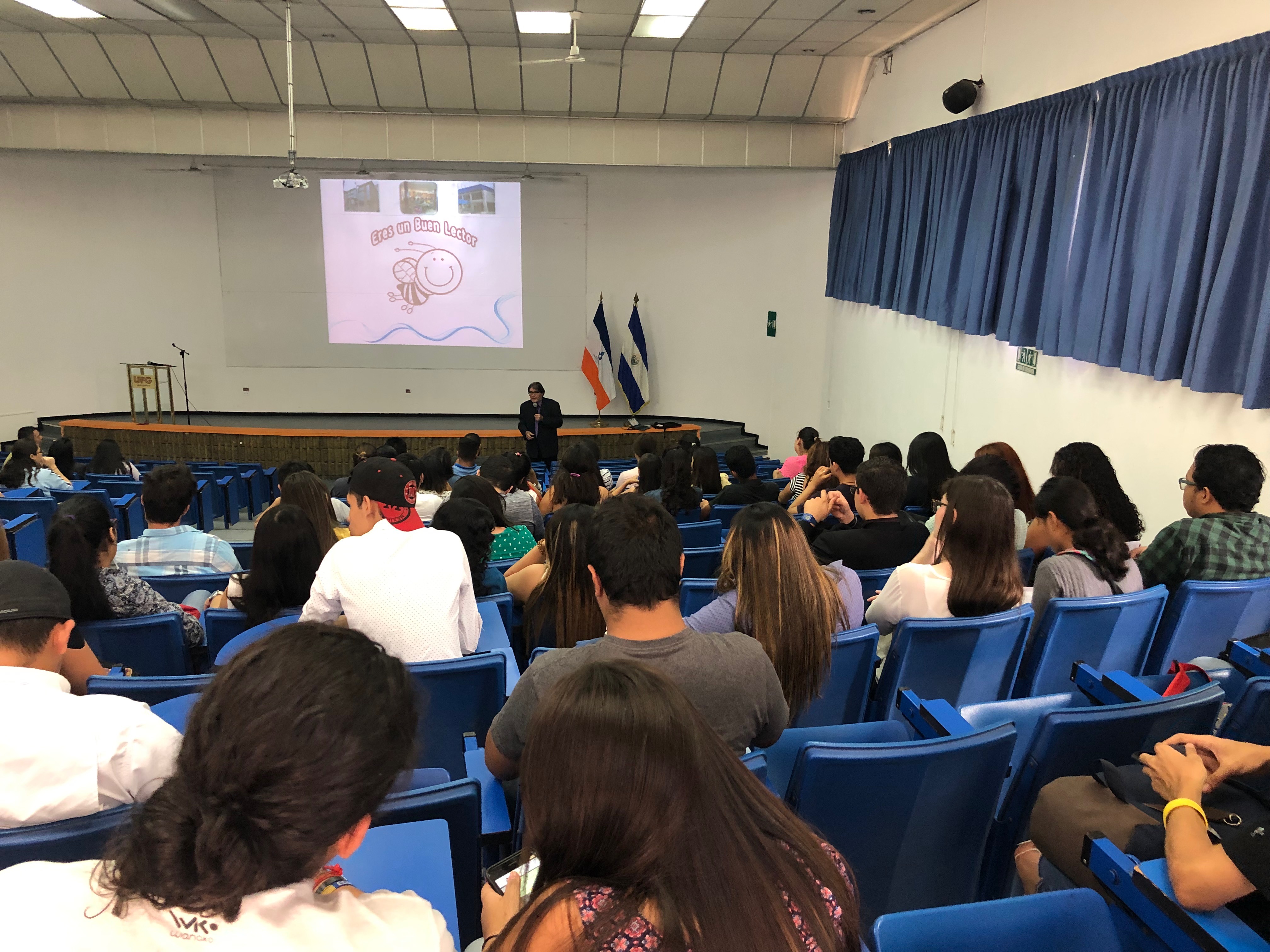 Con el objetivo de conmemorar el “Día Mundial del libro y del Derecho de Autor”, la Universidad Francisco Gavidia a través de la Facultad de Ciencias Sociales y el Sistema de Bibliotecas, llevó a cabo diversas actividades, entre ellas la presentación de la ponencia denominada “El español nahuatizado o náhuat castellanizado“ la que fue dictada por el docente, comunicador y escritor Rafael Martínez Orantes, la palabras de inauguración fueron expuestas por la Decana de la Facultad de Ciencias Sociales, quien destacó la importancia de la lectura como parte del proceso de enseñanza y aprendizaje de los estudiantes y la vinculación con la cultura salvadoreña desde civilizaciones antiguas. En el acto, se realizó la invitación para investigar y escribir referente a temas relacionados al impacto que tienen la comunicación y lectura con los cambios generacionales. Otras actividades realizadas fueron: exposiciones de libros, rifas y demás actividades motivadoras de la lectura. Entre los asistentes y participantes estuvieron estudiantes, docentes e investigadores.