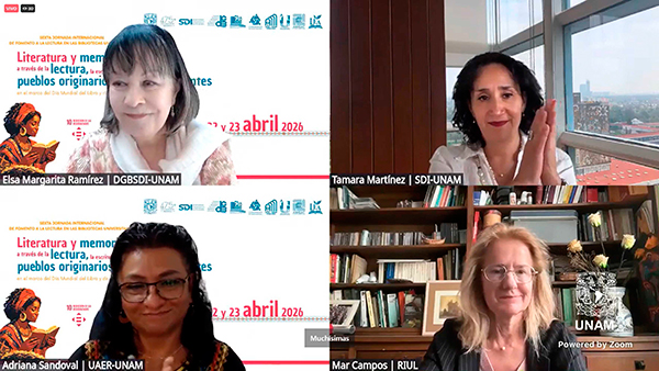 Las bibliotecas deben convertirse en espacios de memoria activa, accesibles y plurales, destacó Tamara Martínez en la inauguración de la Sexta Jornada Internacional de Fomento a la Lectura de la UNAM. En la cual también intervinieron Elsa Margarita Ramírez, Adriana Sandoval Moreno y Mar Campos Fernández-Fígares