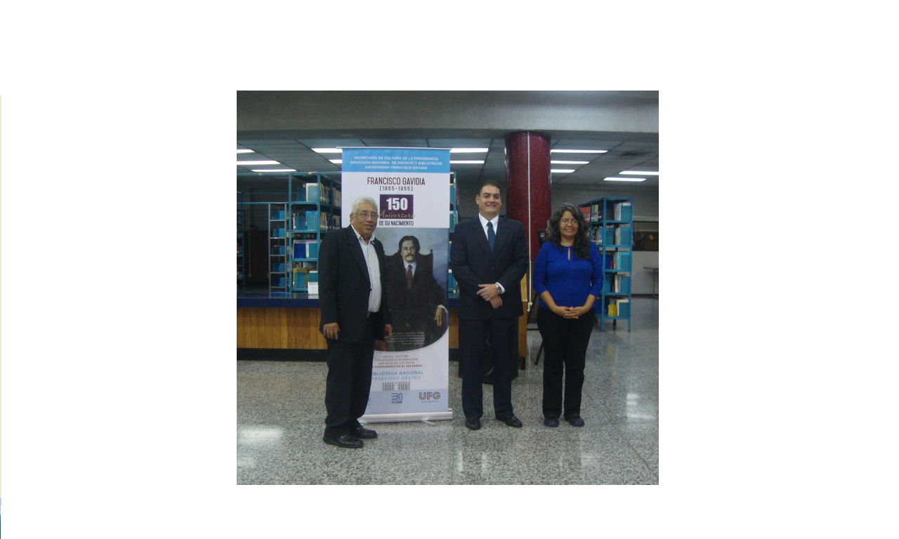 El jueves 24 de septiembre 2015 se llevó a cabo el Conversatorio del Escritor y Educador Salvadoreño Francisco Gavidia, conmemorando los 150 años de su nacimiento, dicho evento se llevó a cabo en la Biblioteca Nacional de El Salvador “Francisco Gavidia” en coordinación con la Secretaria de Cultura de la Presidencia, Dirección Nacional de Archivos y Universidad Francisco Gavidia.