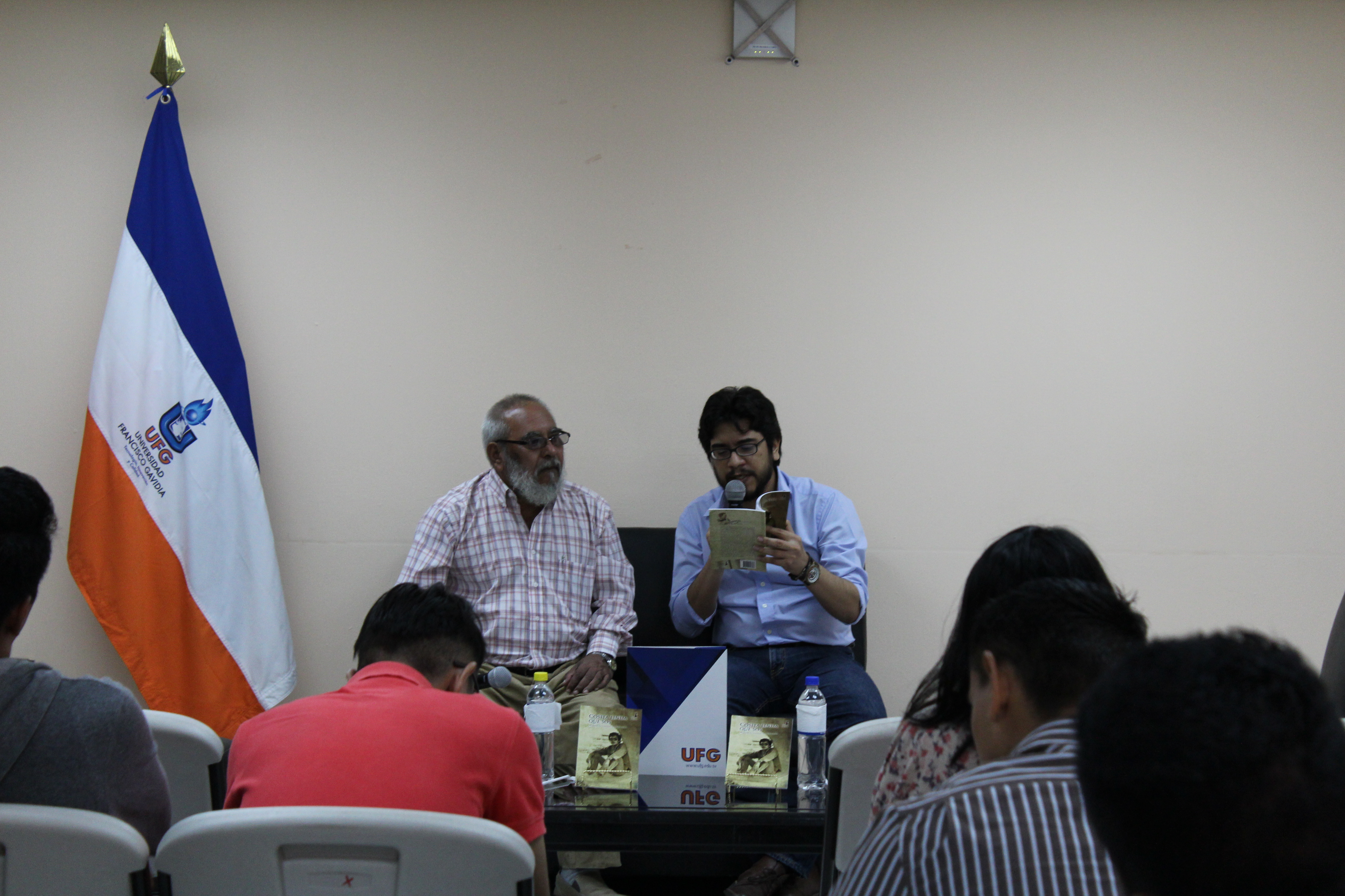 El conversatorio fue dirigido por el Lic. Mario Pleitez, Coordinador de la Unidad de Extensión Cultural UFG y en el que se tuvo la participación del poeta Mauricio Vallejo Márquez, quien compartió parte de la vida de su padre y diversos sucesos que envuelven la publicación del libro.